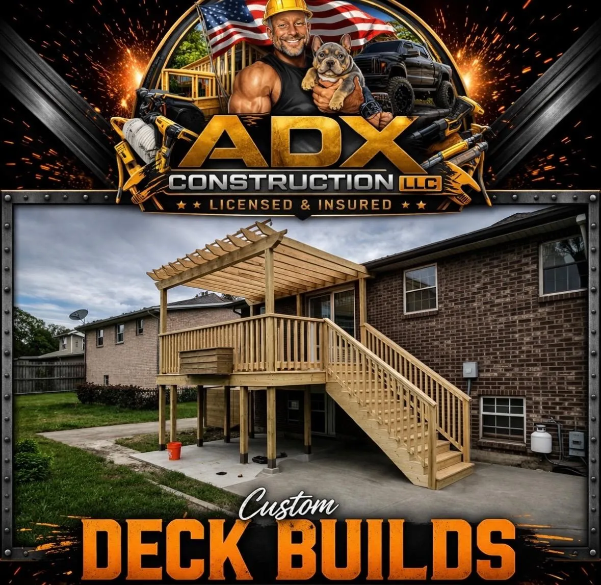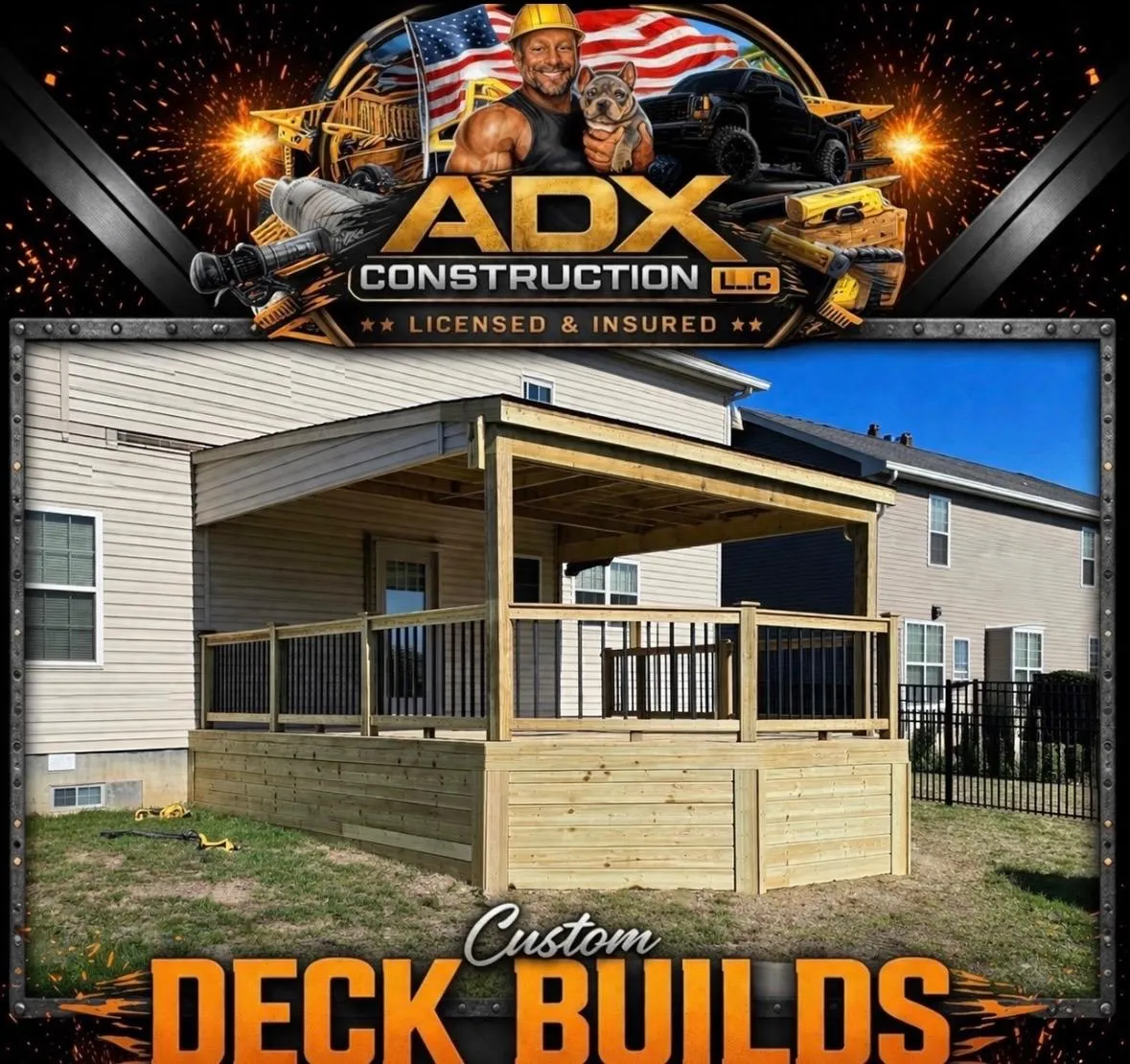 At ADX Construction, we believe your home should reflect quality, strength, and craftsmanship inside and out. We specialize in deck builds, fence installation, gates & railings, and full interior and exterior upgrades designed to elevate your space and add lasting value.